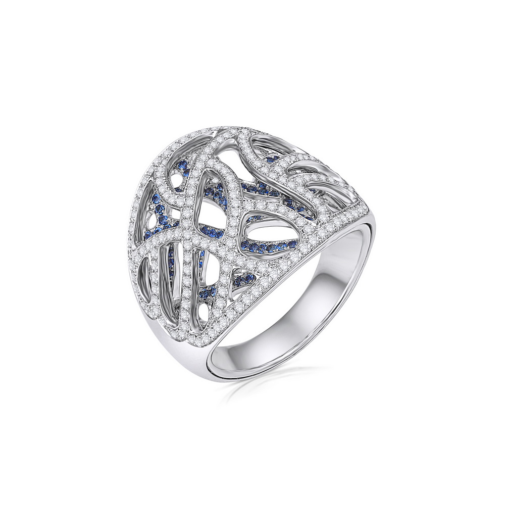 טבעת זהב לבן משובצת יהלומים וספירים - 176KR1258W54 thumbnail 1
