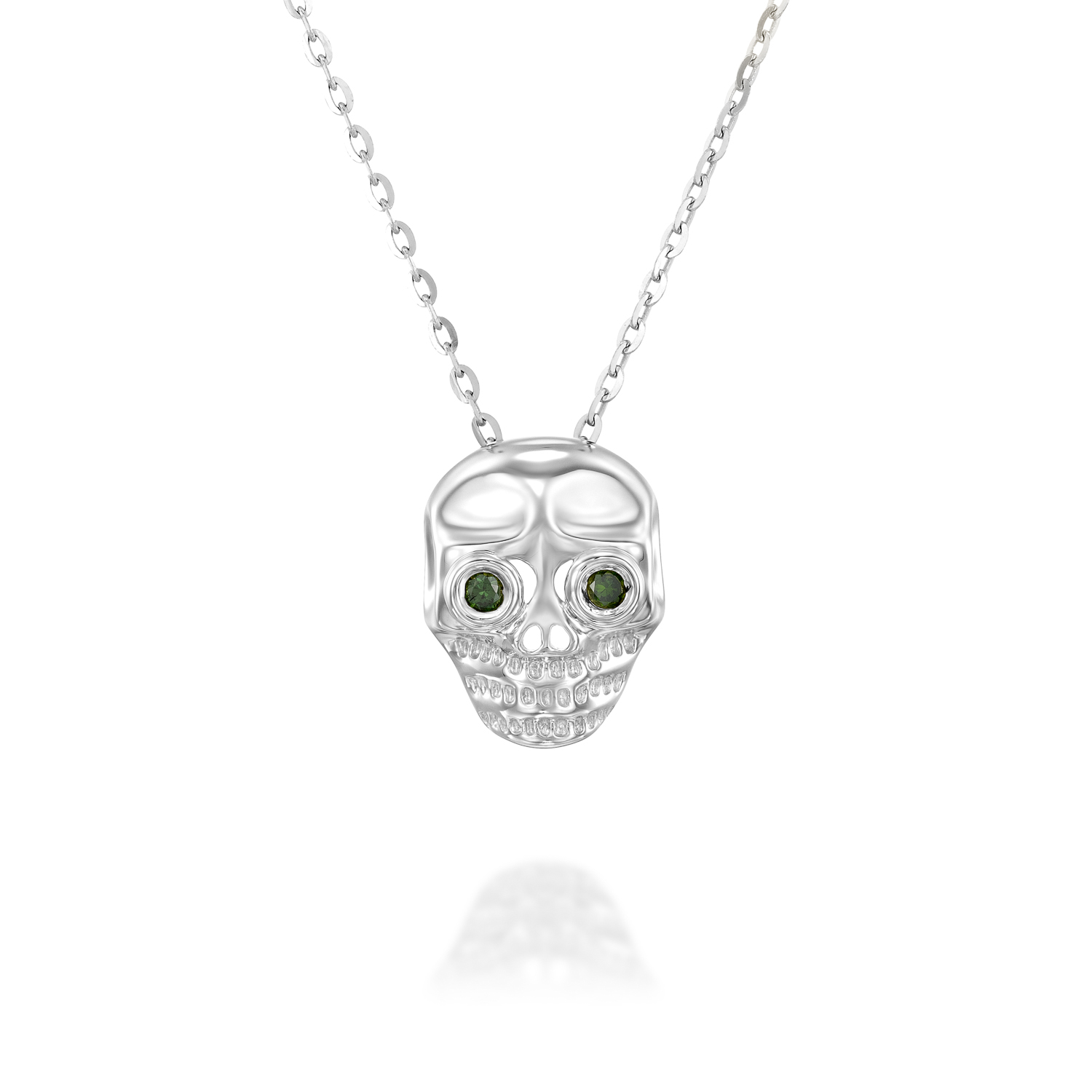 שרשרת ותליון גולגולת משובץ יהלומים ירוקים בזהב לבן