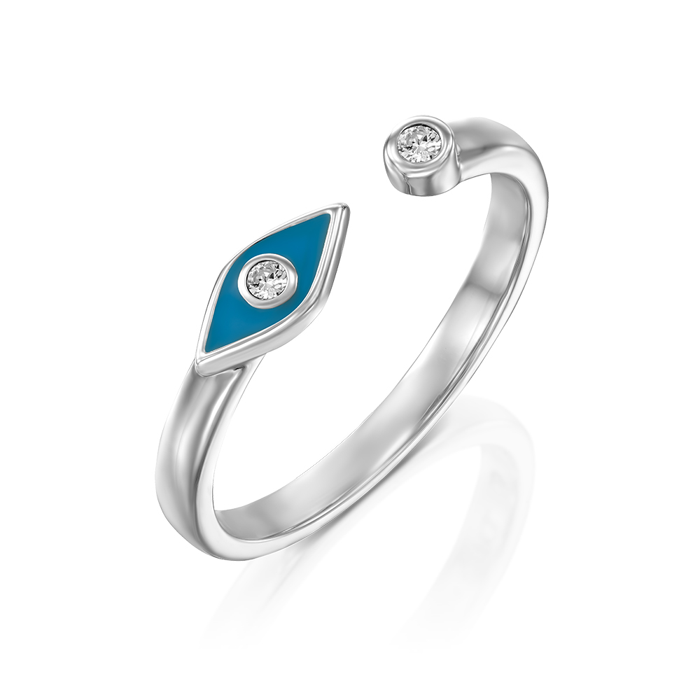 טבעת החסינות משובצת יהלומים טבעיים, 0.04 קראט, מהקולקציה החדשה שלנו, טבעת בעיצוב קלאסי ויוקרתי! הטבעת עשויה זהב לבן 14K.ברכישה באתר שליח עד הבית וגם החזר כספי מלא עד 14 יום.